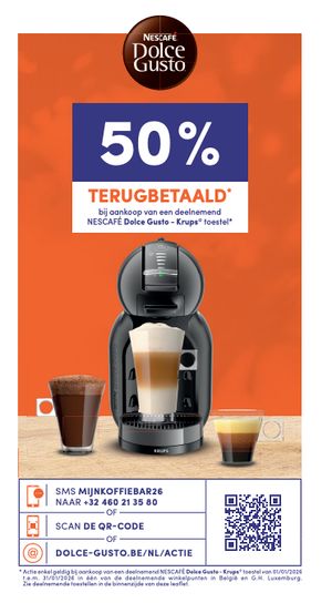 50% TERUGBETAALD bij aankoop van een deelnemend NESCAFÉ Dolce Gusto - Krups® toestel*